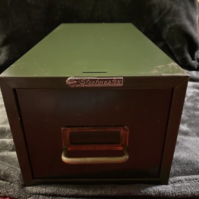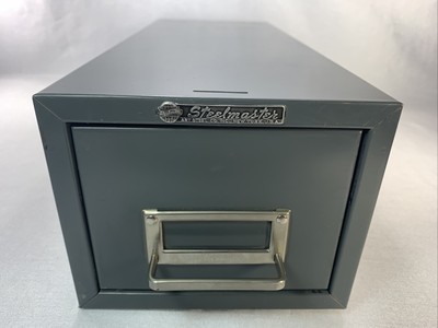 | $ 300 Buy It Now $0 Shipping Condition: Used Location: Chicago,IL,USA $ 300 Buy It Now $0 Shipping Condition: Used Location: Elgin,IL,USA $ 469.95 Buy It Now $0 Shipping Condition: Used Location: Warwick,RI,USA $ 19.99 Buy It Now $0 Shipping Condition: Used Location: Virginia Beach,VA,USA $ 19.99 Buy It Now Free Shipping Condition: Used Location: Boyne City,MI,USA $ 19.99 Buy It Now Free Shipping Condition: Used Location: Springfield,OR,USA $ 49.99 Buy It Now $0 Shipping Condition: Used Location: Hershey,PA,USA $ 49.99 Buy It Now $0 Shipping Condition: Used Location: Hershey,PA,USA $ 19.2 $0 Shipping Condition: Used Location: Las Vegas,NV,USA joe calcite VINTAGE STEELMASTER METAL INDUSTRIAL 2 DRAWER 4X6 INDEX CARD FILE This offering is for one- 2 drawer metal index card file cabinet. Manufactured ... more by Art Steel Co. ASCO) under the Steelmaster brand. The decal is still present but difficult to read. Pulls/ handles with label frame. Interior drawer measures 4 1/2" x 6 1/4" Sized for a 4x6 card. Overall cabinet is 16" x 14 1/2" x 6" excluding pulls. The cabinet and drawers are in good solid condition. Scratches. Dings, light surface rust, etc. as expected from age. THIS IS ONE OF TWO AVAILABLE THAT MATCH. BUY BOTH FOR'BUY IT NOW' AND PAY ONLY FOR SHIPPING ONE. If any further assistance is needed just drop me a note with any questions you may have and I will respond ASAP. We like you to be able to bid with confidence. So we offer a return policy on all of our merchandise. If the item you purchase is not as described and or pictured simply notify us and return the item within fourteen days of receipt and we will refund the purchase price. Our guarantee is not however, intended to cover buyer remorse, so please read the description and examine the ample photo's we provide prior to placing your bid. If additional photo's are needed please ask. International Buyers– Please Note: Import duties. Taxes and charges are not included in the item price or shipping charges. These charges are the buyer's responsibility. Please check with your country's customs office to determine what these additional costs will be prior to bidding/buying.Shipping charges for overseas buyers will be determined after the conclusion of the auction and will depend upon how the buyer wants the item shipped plus insurance fees involved. Out of country buyers must pay by Paypal. GOOD LUCK* THANK YOU! $ 23.44 Buy It Now Free Shipping Condition: Used Location: Canada $ 24.99 Buy It Now Free Shipping Condition: Used Location: Senoia,GA,USA $ 35 Buy It Now Free Shipping Condition: Used Location: Hicksville,NY,USA $ 22 Buy It Now $0 Shipping Condition: Used Location: Dayton,OH,USA | | You are bidding on a vintage Steelmaster 5 drawer. Metal cabinet. It's about 11 1/2" high, and 18 1/2" wide by 16" deep. It has some rust(the top of the cabinet is shown in the picture) but is still in pretty good condition. This is great for tools. parts.any thing you want to store in it. It has a great industrial look for your decor, too! Because I describe my items as honestly and accurately as possible(please see my 100% feedback! I do not accept returns, so please ask questions before bidding! I do not charge a shipping or handling fee. And gladly combine shipping to save you money. This is a very heavy item(30+ pounds! so please check shipping costs before bidding! ~Thanks for looking!~. | Thanks for viewing this auction for One Vintage ASCO Steelmaster Mid Century Industrial 5 Drawer Steel Cabinet This cabinet is preowned in very solid. Clean, ready to use condition. Show minor scuffs/scratches on exterior. No major dents or rust. Very heavy steel construction to last another century. Weighs approx. 33 lbs. Stackable. Cabinet measures approx. 19" across the front X 16" front to back X 11 1/2" high. Drawers are 1 3/4" deep Hundreds of uses from office to workshop to hobby shop. | | | This large steel filing cabinet is made by Steelmaster and sports that name on an attractive badge at the top. There are thirty drawers in all in this 30" wide. 37" tall, 13" deep steel filing cabinet. The drawer interiors each measure 11.25" long x 9.125" wide x 3" tall. Five drawers are missing their handles, but they can be pulled open by the label holders. There is some surface rust in spots and some slight dents and dings, but this is a nice cabinet that could hold a lot of materials, supplies, or small keepsakes. I also have a wonderful selection of other industrial artifacts. Please feel free to browse! Please give me a call with any questions you may have 815-299-7625 Happy bidding PLEASE READ THE FOLLOWING VERY CAREFULLY There is a $10.00 handling charge on all international orders. We can accept NO ... more RETURNS. REFUNDS, ETC. ON INTERNATIONAL ORDERS. We are in no way responsible for damages that may occur during transit. International orders should expect to have an additional 3-5 day handling time. BUYERS ARE RESPONSIBLE FOR ANY DUTIES AND TAXES THAT MAY APPLY. SHIPPING PRICES REFLECT THE FACT THAT ALL OF OUR ITEMS ARE INSURED FOR THEIR VALUE. SHIPPING COSTS ARE AN ESTIMATED REPRESENTATION; ACTUAL COSTS MAY VARY BASED ON ITEM AND DESTINATION. INTERNATIONAL CUSTOMERS: Items shipped to some countries can not always be insured for their full value. In these cases. We will insure them to the full extent available, but will not be responsible for additional damages above the available insured amount. All packages will be shipped out on the first Tuesday or Friday following payment All items are described to the best of our ability and sold'AS PICTURED' TAKE NOTE: Our items are vintage and should be expected to be in such condition. Many of our items have wear and tear appropriate for their age. Including minor rusting, dings, scratches, etc. We do our best to note any cosmetic problems in our descriptions. ALL ITEMS REQUIRING PALLETIZING WILL INCUR AN ADDITIONAL $35 HANDLING FEE IR- | Vintage Green Metal Industrial File Cabinet Measures approx 1